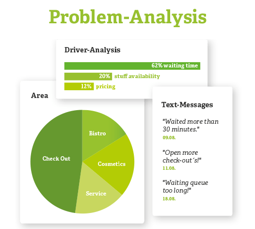 The SayWay driver analysis is now considered a standard tool in retail. Here, only dissatisfied customers are asked about what drives their dissatisfaction in order to quickly identify areas for action.